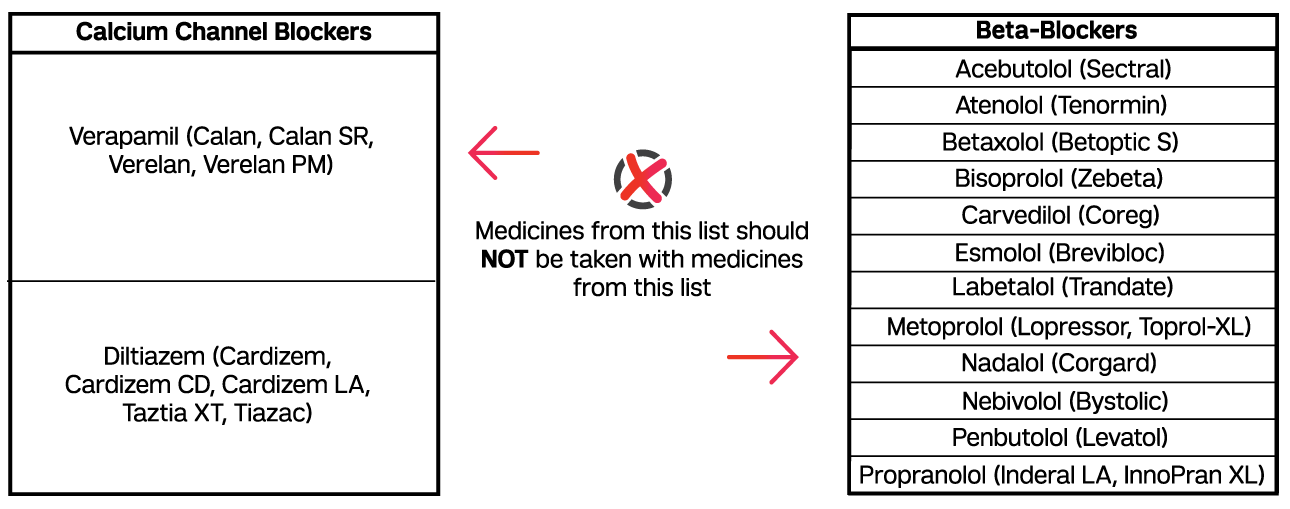 According to the 2017 Hypertension Guidelines, the use of beta blockers with non-dihydropyridine calcium channel blockers (CCBs), verapamil and diltiazem, should be avoided.4 In addition to causing left ventricular depression, beta-blockers can increase the pressor response caused by clonidine withdrawal. The additive effect caused by concomitant use of beta-blockers with non-dihydropyridine CCBs may result in bradycardia.7-9 The European Societies of Hypertension and Cardiology (ESH/ESC) recommend combining beta-blockers with dihydropyridine CCBs.2 Unlike non-dihydropyridine CCBs, which exhibit cardiac selectivity, dihydropyridine CCBs exhibit vascular selectivity and are therefore less negatively inotropic.9