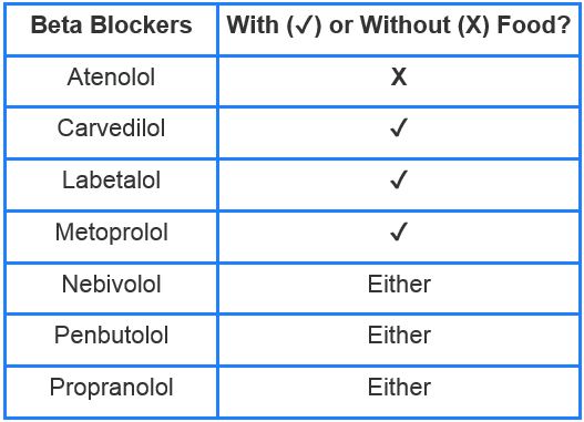 Some beta blockers must be taken with food, while others should not be taken with food.