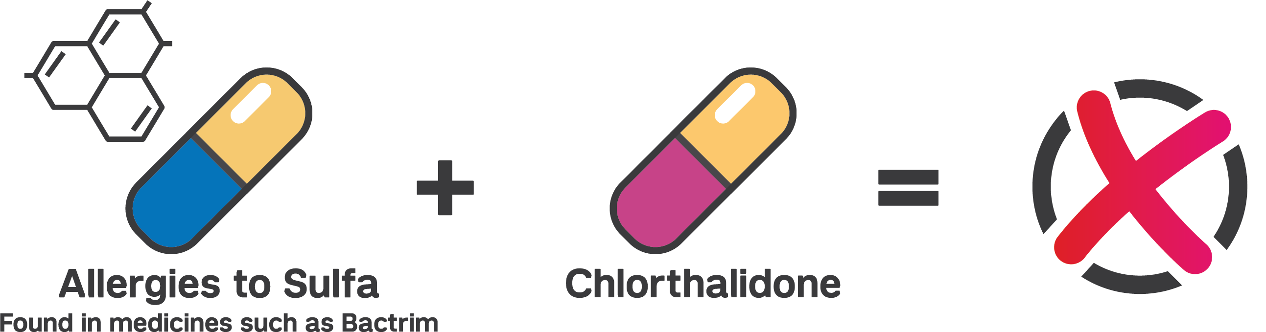 People who are allergic to sulfa drugs should not take chlorthalidone. Sulfa drugs include medicines like the antibiotic Bactrim. People with a known allergy to sulfa drugs may have allergic reactions to chlorthalidone. Because of this, doctors usually recommend a different medicine.